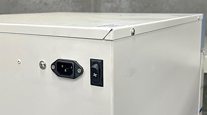 - The fan switch is positioned on the back of the incubator near the IEC power socket.